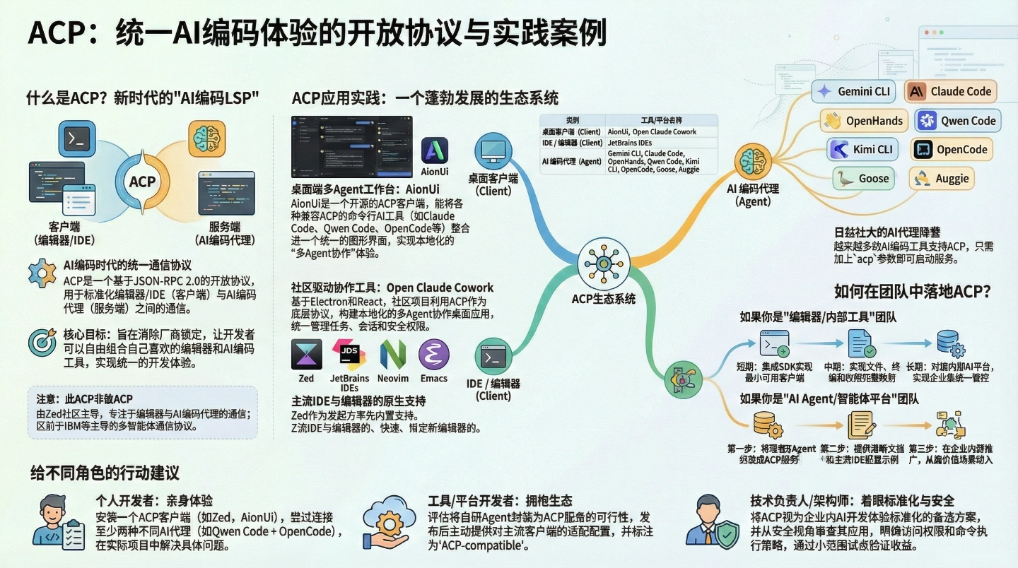 在“AI 原生开发体验”这条路径上,ACP 与 LSP 一样,很可能会成为一种 长期存在的基础设施标准: