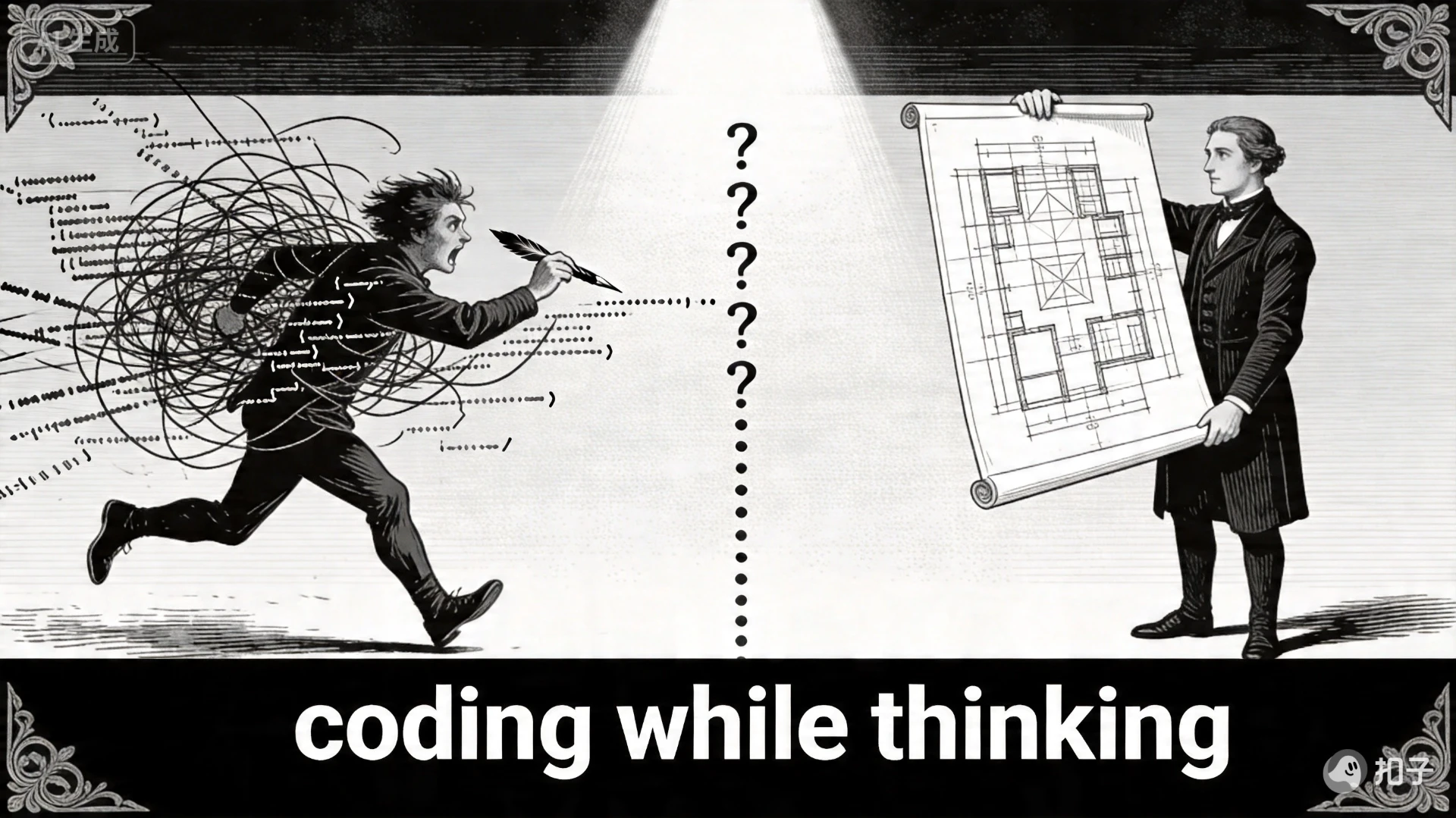 所以我们开始用 AI 编程,其实还是在"边想边写"——只不过把"自己写"换成了"让 AI 写"。本质没变,效率提升也有限,心智负担却变得越来越重。